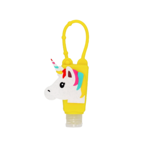 Un gel désinfectant pour les mains en format pocket avec son support en silicone pour assainir et hydrater les mains des petits et grands.